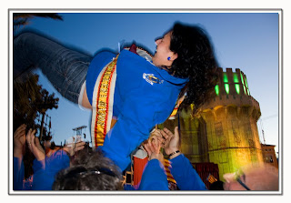 Ya debajo mismo de las torres y disfrutando de la espectacular verbena nuestras falleras mayores Patri y Raquel fueron manteadas por nuestros agerridos y corpulentos juveniles.