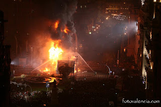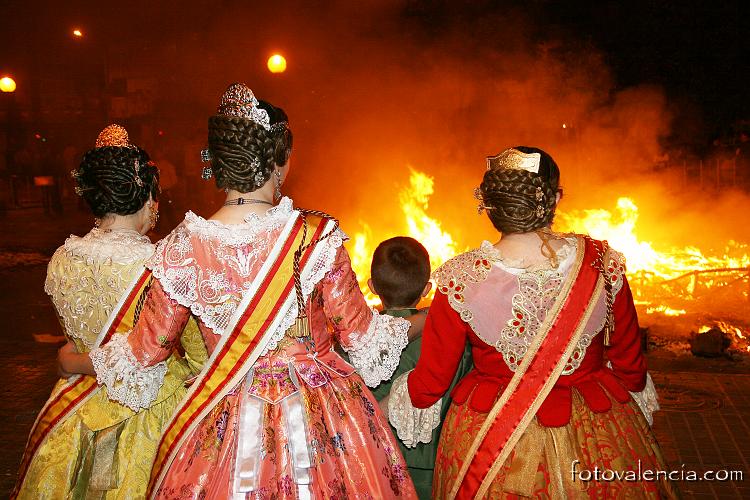 Tras unos minutos, de la falla no quedan más que cenizas y una huella en el asfalto . Los falleros celebran el fin de fiesta, y los más trabajadores recogen los trastos que han quedado por la calle. Después toma el relevo un ejército de barrenderos, que se encargan de recoger todas las cenizas para que al día 20 no haya ni rastro de lo que habían sido unos magníficos monumentos de cartón-piedra o corcho actualmente.
