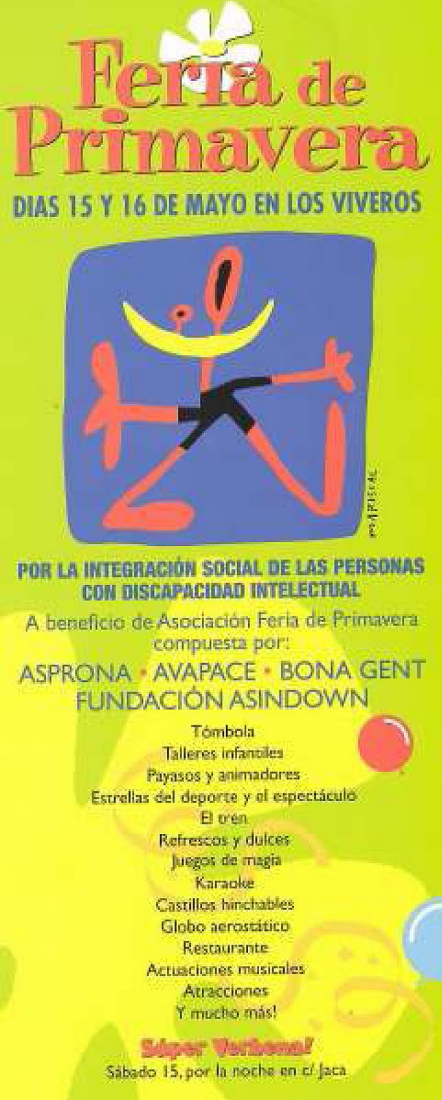 Desde hace diecisiete años, en el Parque de Viveros de Valencia, la Feria de Primavera apuesta por dar a conocer el mundo de la discapacidad intelectual, apuesta por la solidaridad y la sensibilización de nuestra sociedad. De este modo los jardines de viveros se convierten en un espacio abierto a todos, mediante un extenso programa de actos.
