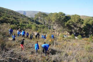 Domingo 16 de Enero , despues de un merecido almuerzo en un bar de la localidad , los falleros y falleras se pusieron a la faena y no se quedo ni un solo arbol por plantar.